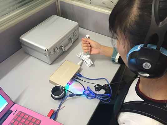 La détection se fait par un casque sur les oreilles et un capteur manuel pour enregistrer les influes magnétiques du corps.
